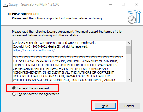 Tiến hành cài đặt. Chạy file FurMark_1.21.2.0_Setup