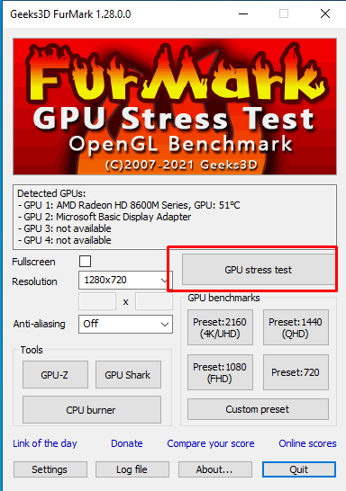 Kiểm tra GPU stress test.