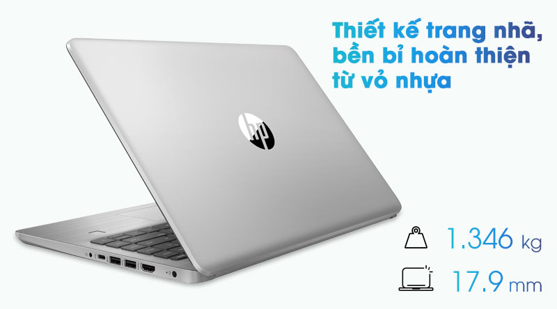 Laptop HP 340s G7 được hoàn thiện từ vỏ nhựa nhưng được phủ một lớp màu bạc sáng bóng cho cái nhìn sang trọng không kém các mẫu laptop vỏ kim loại. Trọng lượng chỉ 1.346 kg dễ dàng để trong balo hay túi xách để mang theo khắp nơi, thoải mái nâng máy chỉ bằng một tay.
