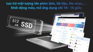 Ổ cứng SSD 512 GB M.2 PCIe cho phép lưu trữ một lượng lớn dữ liệu như phim ảnh, tài liệu, file nhạc,… Với ổ cứng SSD, mọi thứ cũng vận hành nhanh chóng hơn, đặc biệt là thời gian mở máy được rút ngắn đáng kể, chỉ còn khoảng 10-15 giây.